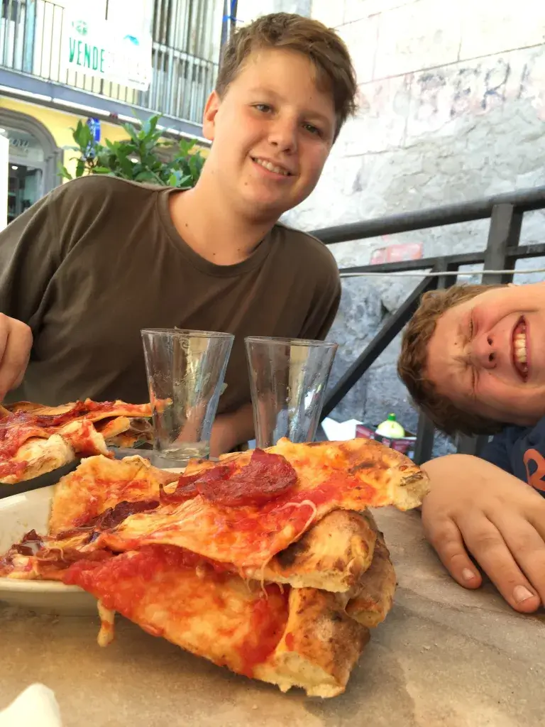 The cashier is drawing ever nearer and you notice – through the chaos – there seems to be an actual system to the ordering, note taking, number giving, crying, mama-mia-ing, gesticulating and table-number taking. If only you can work it out between now and the two large families waiting in line in front of you. Anxious sweat is mixing with the standard summer-heat variety. As the queue behind you grows, trickles of it are ballroom-dancing down your back in rhythm with the live band and the unexpected grace of the Samba, Rumba and Cha Cha-ing locals. Glancing over to where you last saw your family you see it is your ‘starving’ children who are crying – not having eaten for at least 2 hours. No pressure then: a bevy of hungry children in tow, halting Italian on the tongue, an impatient Italian at the till – and very many more questions than answers.